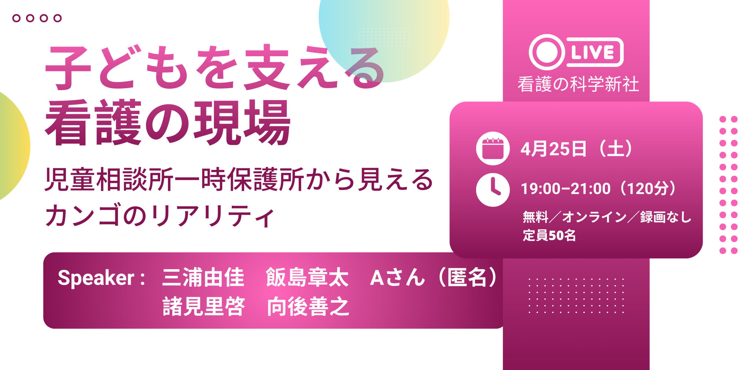 4月25日(土)19:00~21:00オンラインイベント:子どもを支える看護の現場 児童相談所一時保護所から見…